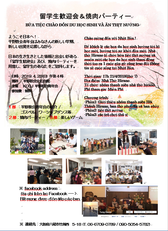 日時:2019. 4. 28 (主)午後 4時 場所:在日大韓基督教 平野教会